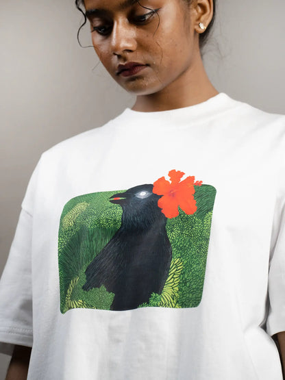 They say those who wear a hibiscus flower have gone mad. But the crow doesn’t care. The crow doesn’t mind when others deem all crows a nuisance, for she knows how to see beauty where others see disruption. She knows how beautiful a fiercely blooming hibiscus is—just like herself.
